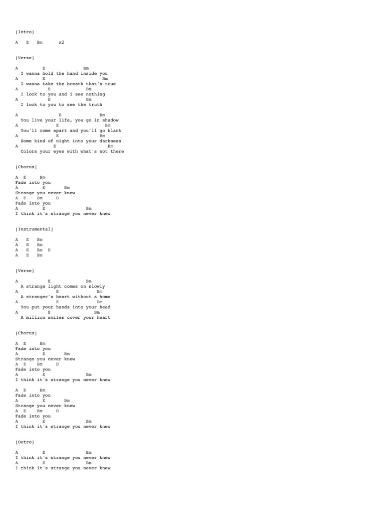 Sheet music for fade into you by mazzy star arranged for piano/vocal/chords in a major. Digital sheet music from musicnotes. Share, download and print free sheet music of fade into you mazzy star for piano, guitar, flute and more with the world's largest community of.