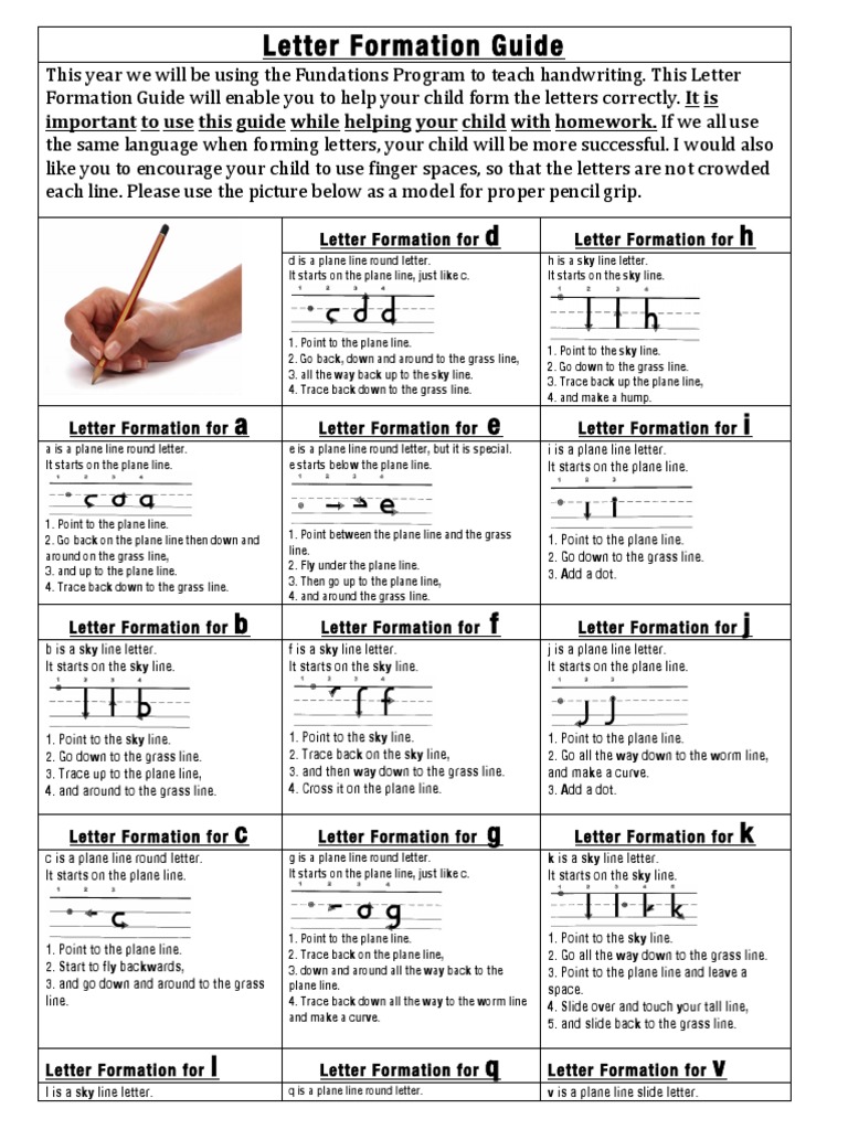 Fundations® Letter Formation Guide Use The Following Verbalization To Direct Students In Proper Letter Formation.